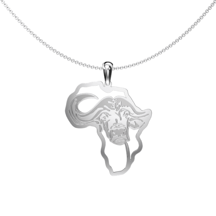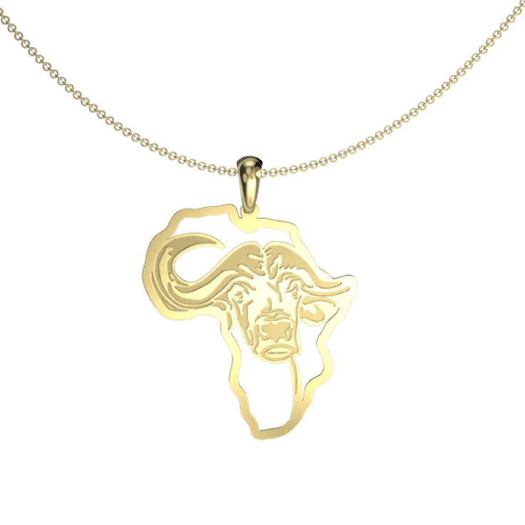 The Buffalo African Map pendant creates a very original piece of jewellery that reminds you of the heritage of Africa. This Pendant comes in 9ct white and yellow gold.