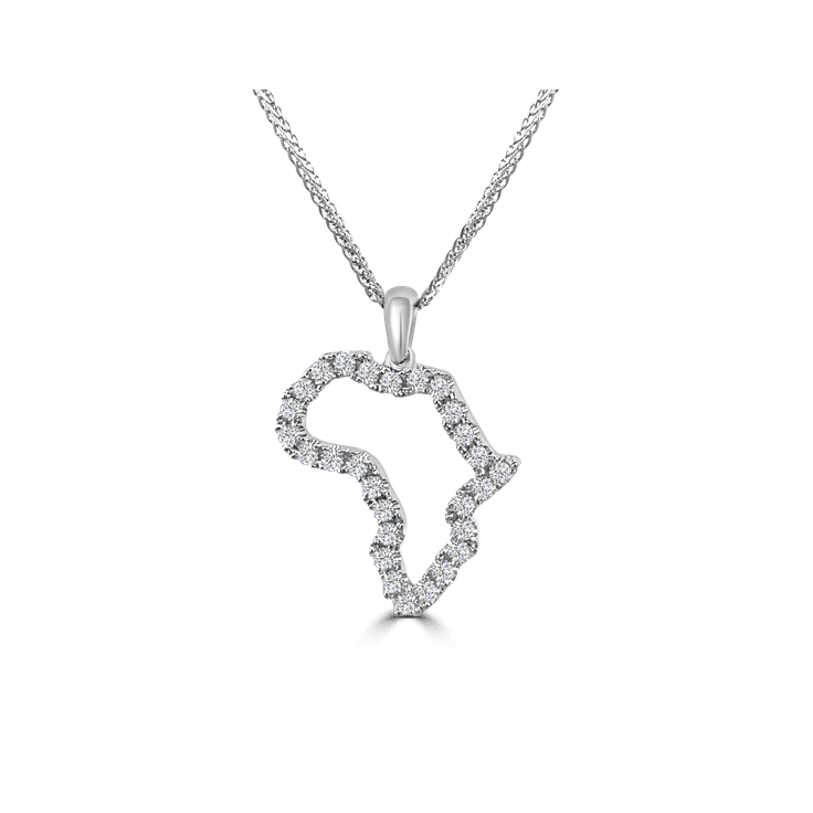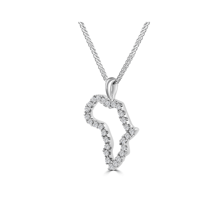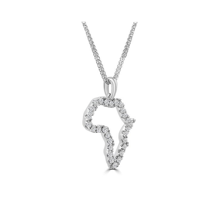 18ct White Gold Diamond Map of Africa Pendant set with 27 diamonds weighing in total 0.57ct Colour F-G Clarity VS