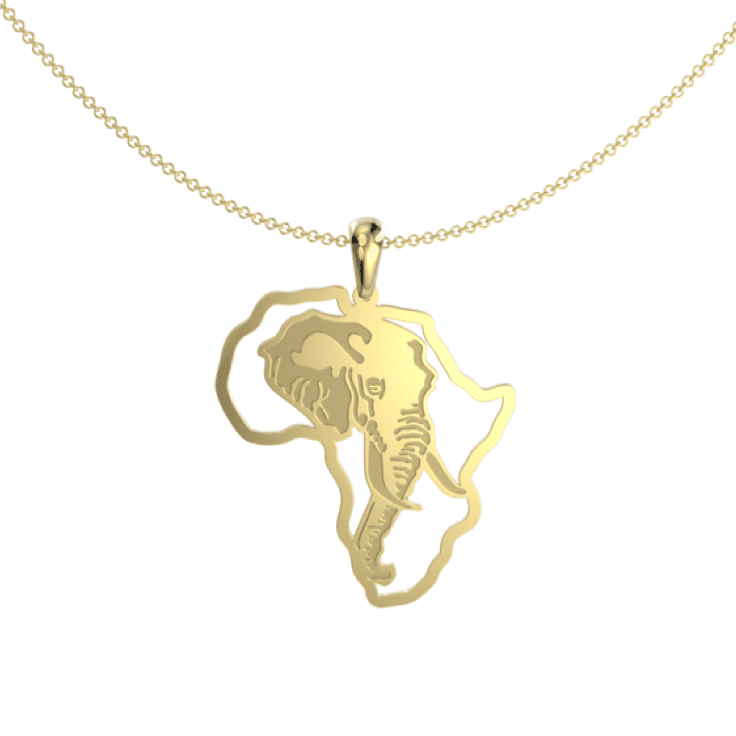 The Elephant African Map pendant creates a very original piece of jewellery that reminds you of the heritage of Africa. This Pendant comes in 9ct white and yellow gold.
