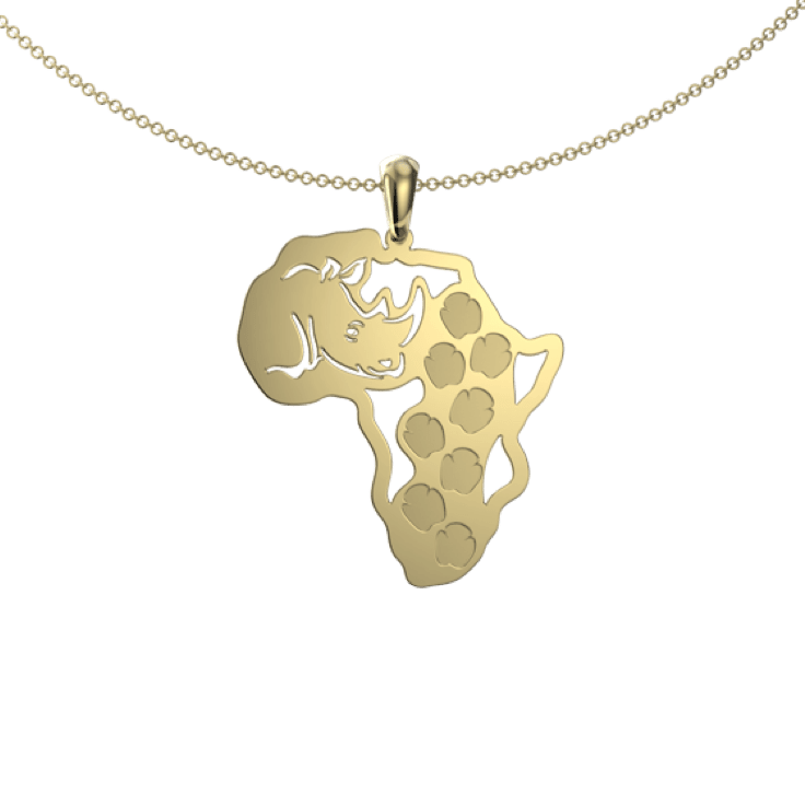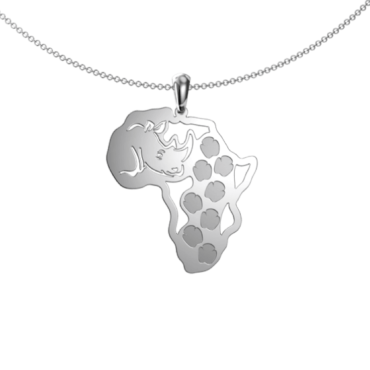 The Rhino Footprints Map pendant illustrates the footprints of our animals which are the cornerstones of Africa. Take the beauty of Africa wherever you go with this special piece of jewellery. This pendant comes in 9ct white or yellow gold.