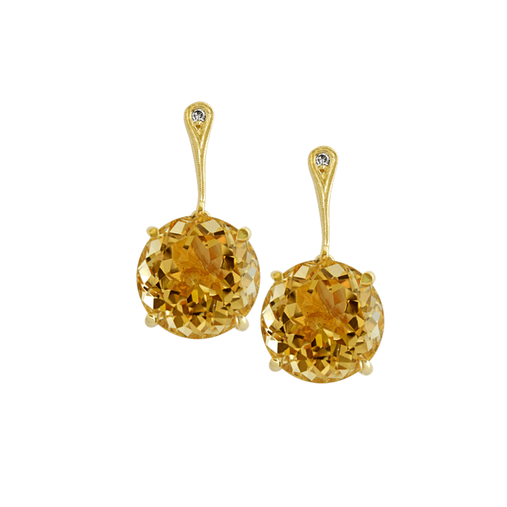 Make a statement with these exquisite round citrine and diamond drops. The different sized stones allow you to choose a daywear look or a larger pair for a more dramatic look. These Citrine earrings come in 9ct Gold