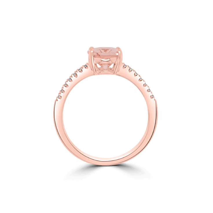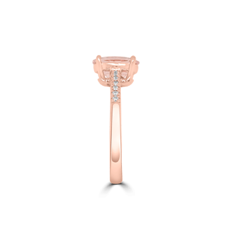 18ct Rose Gold Oval Morganite and Diamond Pave Ring set with a morganite stone weighing 1.49ct and small diamonds weighing in total 0.10ct Colour F-G, Clarity VS
