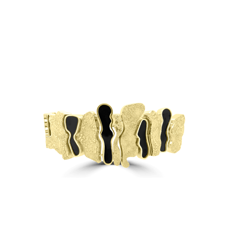 The Gold & Black Onyx African Bracelet/Choker illustrates the cornerstones of Africa. Take the beauty of Africa wherever you go with this special piece of jewellery. Designed by Lorna Friedman – Jack Friedman’s daughter.