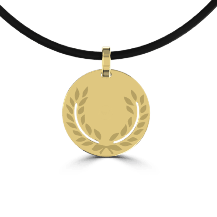 9ct Solid Yellow Gold Round Tagg’d Competitive Pendant with a Complimentary Silk Cord Chain