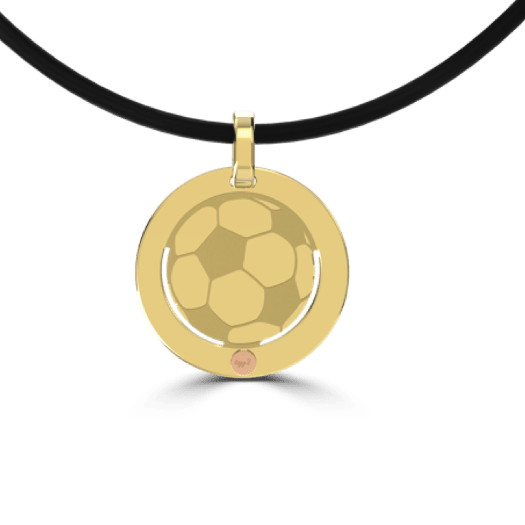 Competitive Pendant and 9ct Rose Gold Tagg’d icon. The soccer ball and trophy design represent a competitive personality.