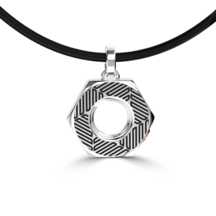 Solid Sterling Silver Hexagon Tagg’d Mechanic Pendant with a Complimentary Silk Cord Chain