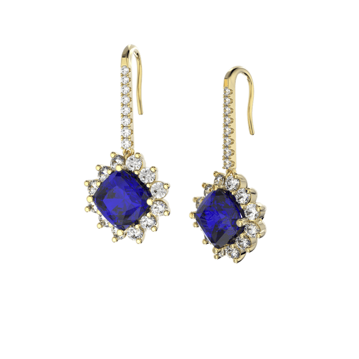 The diamonds will attract light and form sparkles all around each of the 3.2ct Tanzanite Centre Stones while enhancing the colour of your Tanzanite to reflect the best rays of colour. These earrings come in 18ct.
