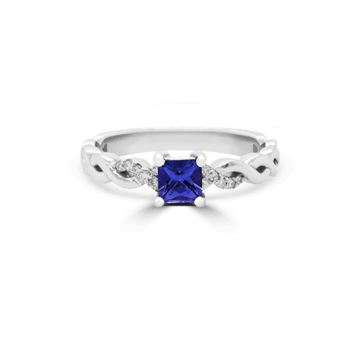 9ct White Gold Princess Tanzanite & Twist Diamond Ring set with 10 small diamonds weighing 0.04ct in total, F-G Colour, VS Clarity and a 0.40ct tanzanite centre stone