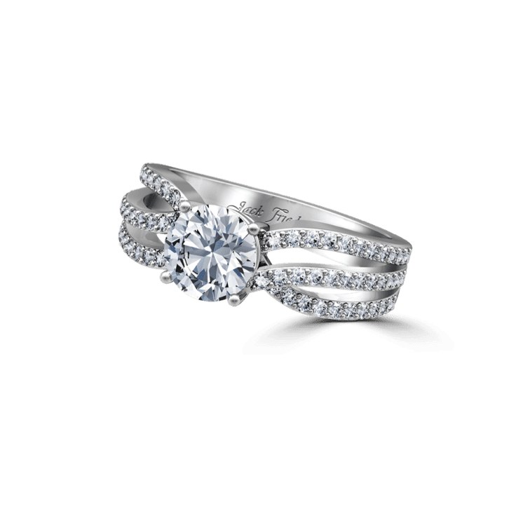 Displaying mystique charm, the Broad 3 Row Cross Over Dancing Light Engagement Ring flaunts a brilliant-cut diamond in the center. Crafted beautifully to put emphasis on the center diamond, three crossover rows of diamonds set in pave gives a classy contrast to the overall look of the ring.