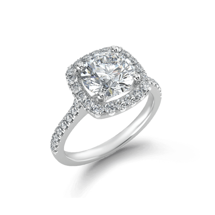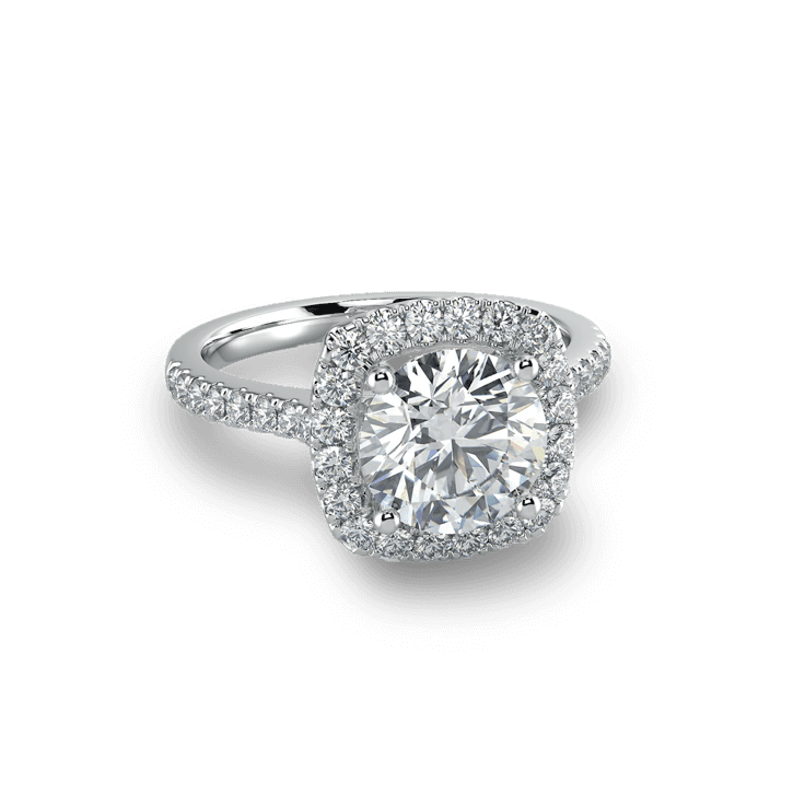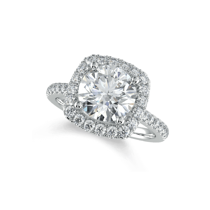 The diamonds surrounding The Cushion Halo Engagement Ring attract the light, forming a glittering halo, drawing attention to the brilliance of the centre diamond and this creates rainbow colours to sparkle in your diamond. Read more about our diamond shapes.