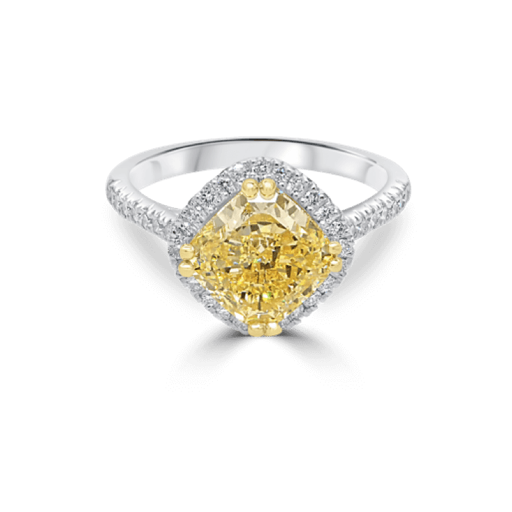 Intense Fancy Yellow Cushion Diamond Halo Engagement Ring
