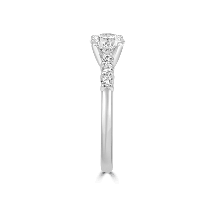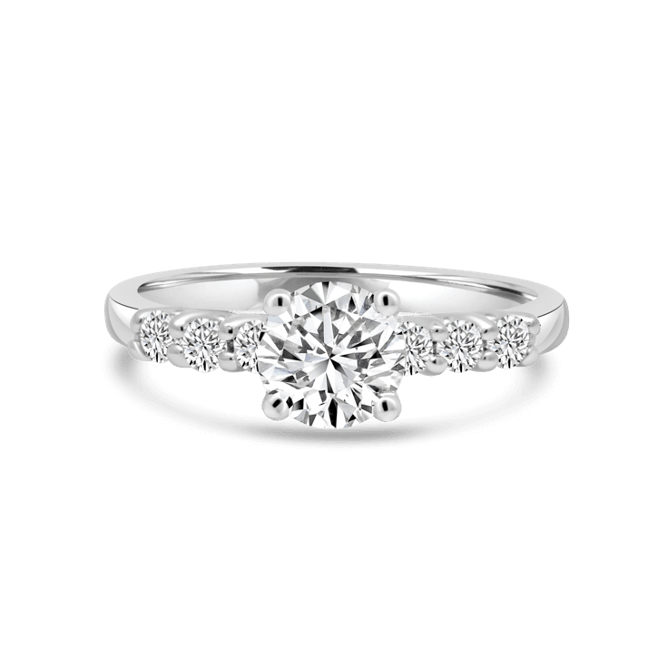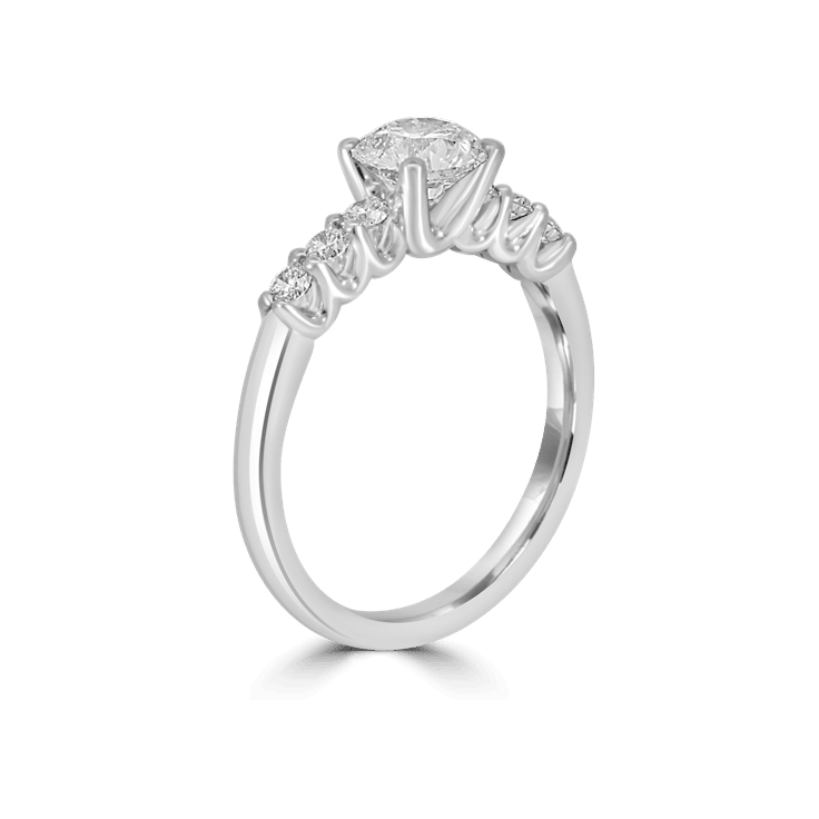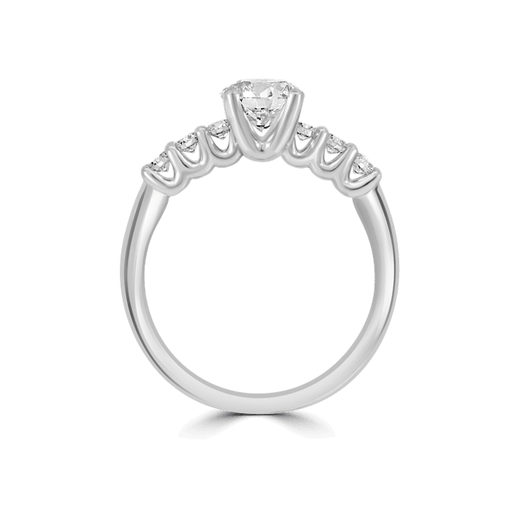 The 7 Stone La Mer Engagement Ring has a unique open u-shaped claw design that allows the flow of light to travel seamlessly through the diamonds, making your diamond appear bigger and accentuating the sparkle.