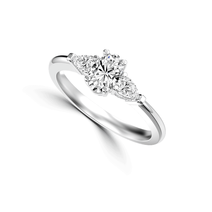 The Oval & Pear Trilogy engagement ring has an oval cut diamond center with two strategically elevated pear-shaped diamonds that optimises light reflection. A well-balanced ring design that is handcrafted to perfection. When creating a Jack Friedman engagement ring, we follow a unique process before reaching the final engagement ring design, read more.