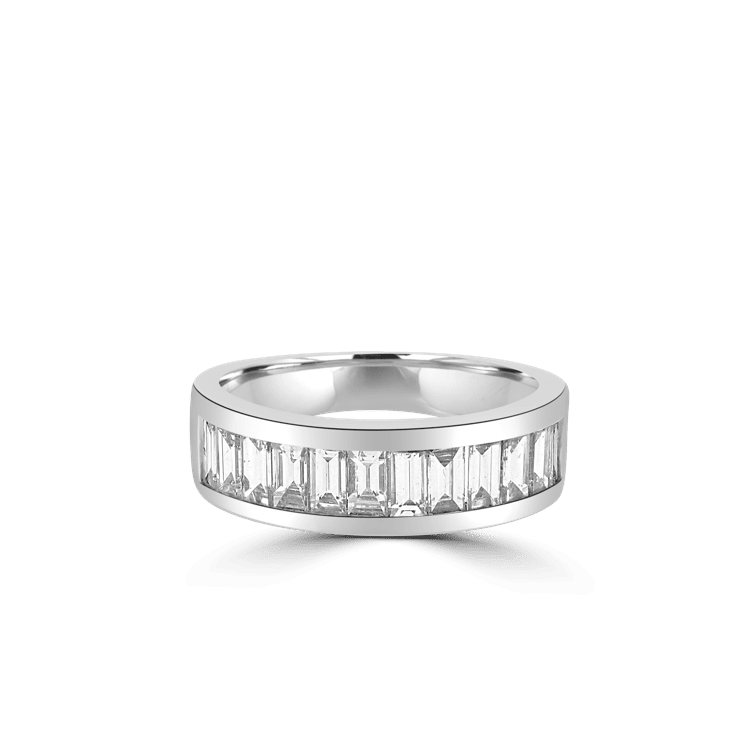 18ct White Gold Baguette Channel Diamond Ring set with 12 diamonds weighing in total 0.98ct, Colour F-G Clarity VS